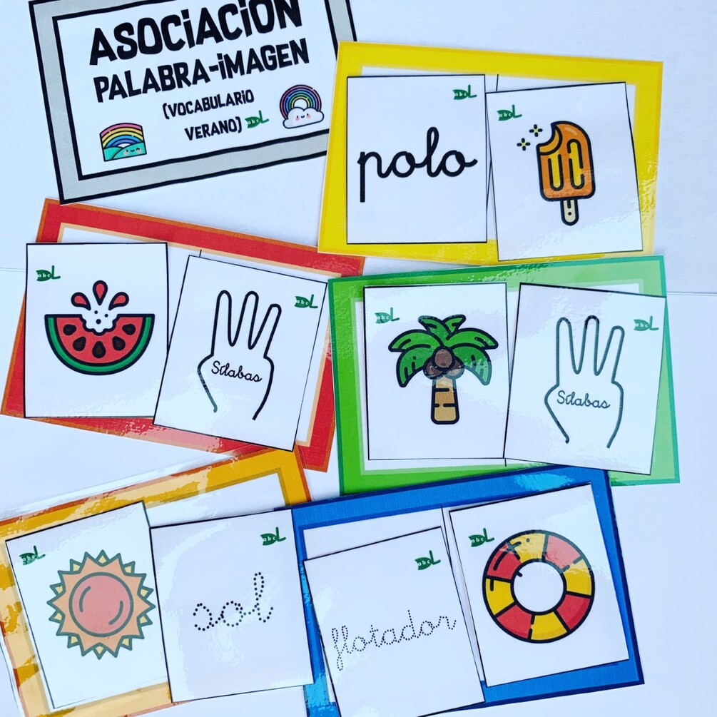 JUEGO DE 6 MATERIALES DE VOCABULARIO PARA ASOCIAR PALABRA IMAGEN DE LA SERIE ARCOIRIS.